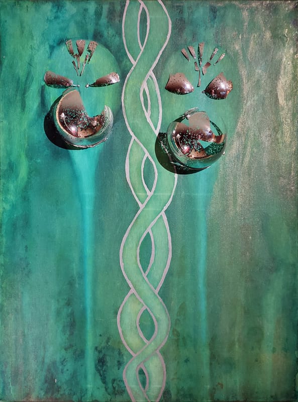2021 60×80 cm Aquarell un Acryl mit Christbaumkugel auf Leinwand